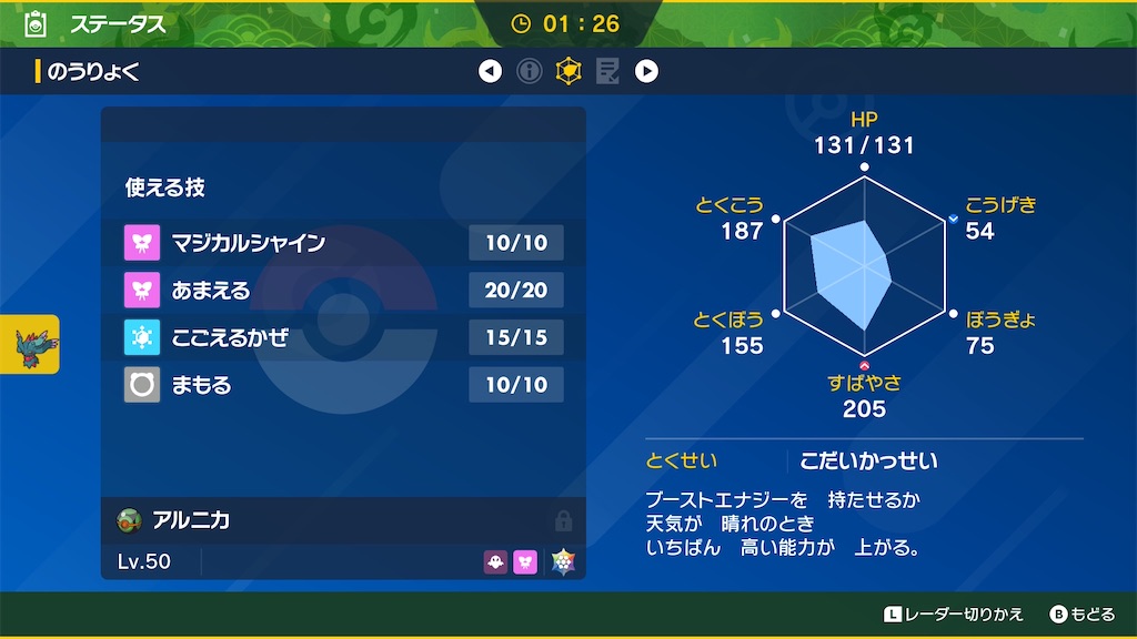 玉インファ、玉フレドラの火力が想定外な人が多かったのか9割の試合はコイツでゴリ押せた。後は相手のテラスタルを見てから動ける守るが偉かった。ニトチャの枠はソウブレイズへの打点になる技とかと変えた方が良い(考察不足ポイント①)。