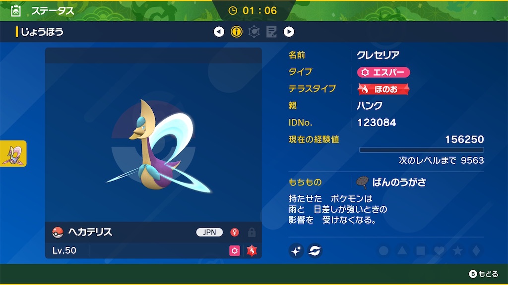 ミライツツミが出てきそうな時に出してた。猫騙しで相手止めてテラスタル確認できたり、ドラアタのSダウンだったり強い要素の多いポケモンだった。自分で言うのもなんですが、テツノツツミにアンコールされたら詰みなのに猫騙ししまくっているのは流石に頭終わってるなと思いました。